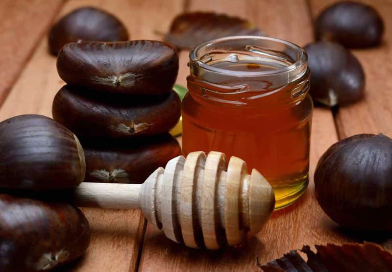 Il miele di castagno si ottiene dai fiori di castagno e viene raccolto tra i mesi di giugno e ottobre. È un miele scuro, dall’odore aromatico e dal sapore complesso. Noto per le sue proprietà anti-infiammatorie e anti-batteriche, è una fonte di proteine, vitamine B e C e di s